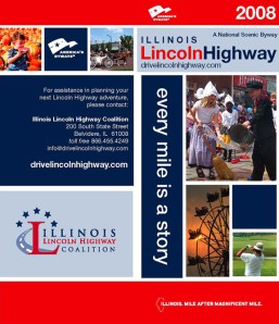 Hot off the presses is the Illinois Lincoln Highway Coalition 2008 Visitor Guide, a 9” x 4” booklet with 84 pages and a fold out map on the back cover. The free guides will be available at many Tourist Information Centers in Illinois plus select Convention & Visitor Bureaus, or request one at no charge by calling toll-free (866) 455-4249. Click on the images below to see them larger.
