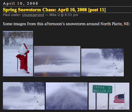 Apparently, warm temps kept it from getting worse, but a NWS blizzard warning is still in effect through Friday 7 pm. According to another Bulletin story, the storm is heading to Iowa with wind gusts up to 40 mph.