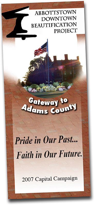The Abbottstown Beautification Project is a capital campaign to improve the Center Square located in the middle of the Lincoln Highway in Adams County, Pennsylvania. Personalized bricks and other sponsorship opportunities will help fund brick sidewalks, colonial era lighting, crosswalks, and landscaping. Also included is a large, lighted flagpole in the center of the traffic circle and the Abbottstown schoolhouse bell and cupola on the northwest corner. Here are the four corners plus a Lincoln Highway mural. Photos by Becky Fengfish.