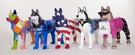 Our friend RoadDog wrote about a public art project celebrating the bond between Northern Illinois University and the DeKalb/Sycamore communities. More than 50 fiberglass painted Huskies were sponsored by individuals, businesses, and organizations. Each came as a pair: a 40-inch tall dog and a 20-inch pup.