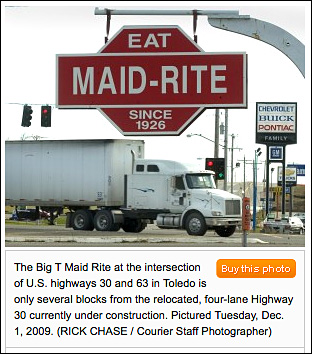 Big T’s Maid Rite has been a longtime institution at the intersection of U.S. highways 30 and 63 in Toledo. Cars come and go as travelers stop for coffee and pie. Others want the “mo” – a Maid Rite with onions and mustard.