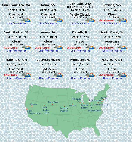 My web site has selected weather updates along the Lincoln Highway at www.brianbutko.com/lh.gr.weather.html/. As you can see, Wyoming, Nebraska, and Iowa are below zero in addition to being snowed in.