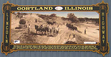 Illinois Lincoln Highway Coalition unveiled two more of the 40 Interpretive Murals being installed along the Illinois Lincoln Highway National Scenic Byway and its corridor. The two are in Cortland and Genoa, the latter never on the route but nonetheless being recognized as being within the highway’s corridor of influence. Both murals feature “The Good Roads Movement.”