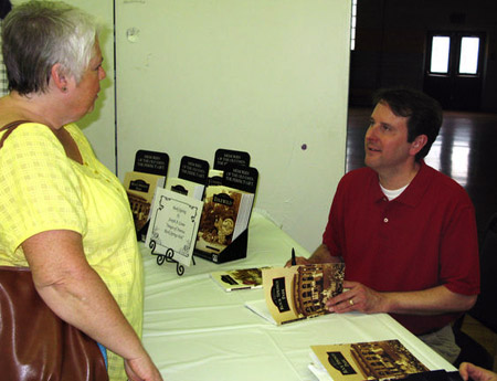 Joseph Comm, author of “Rock Springs Park,” signs a book for Patty Swiger at a signing event held Monday at the Chester Municipal Building. Prior to the signing, Comm talked about how his book came to be. (Photo by Nancy Tullis).