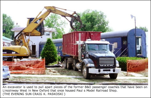 The Evening Sun of York, Pa., reports that a pair of classic railroad cars that greeted Lincoln Highway travelers to nearby New Oxford have been demolished and sold for scrap.