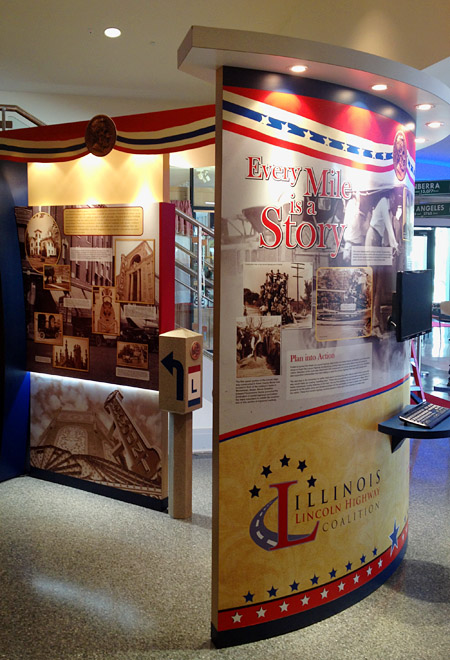 The newest project by Illinois Lincoln Highway Coalition is not a mural or gazebo, it’s an exhibit at the Joliet Area Historical Museum in Joliet, Illinois. The unveiling coincided with the first-ever Illinois Scenic Byway Week, recently designated by Governor Quinn.