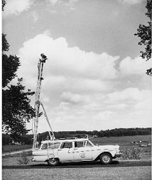 Amazingly, most of it was filmed by a camerman perched atop a ladder connected to a car and extending approximately 22 feet in the air above the roadway! The camera, on a 1958 Ford Ranch Wagon, followed and filmed a 1958 Plymouth Fury. “The unidentified cameraman had the precarious task of trying to hold the camera steady and stay on the ladder, notably without a safety harness or other protective device.”