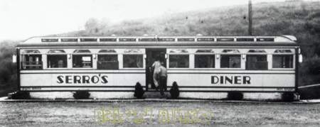 Best I can tell, it was just southwest of Street Road (which is now Old Street Road, dead-ending at newer, wider Route 1). The diner’s name was registered by Emilio Ciotti in 1951. As the postcard back notes, the Golden Arrow was build by Comac in Irvington, N.J., a relatively rare make.