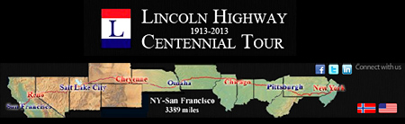 Our goal is to gather 100 participants who will ship their historic vehicles to the U.S from overseas and spend 4 weeks crossing the American Continent on the Lincoln Highway. This will help raise public awareness and renew interest in the Lincoln Highway during its centennial celebration. U.S residents are also encouraged to join the tour making it as grand and diverse as possible. The tour will conclude at the Lincoln Highway’s western terminus; the Lincoln Park in San Francisco on July 26th, 2013, having covered an approximate 3,389 miles and journeyed through 13 states.