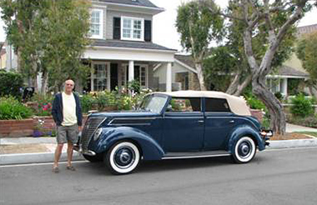 Two friends are set to drive their antique autos across this summer, and like an increasing tide, will follow the Lincoln Highway and let us all follow along on their blog. SoCal Early Ford V-8 Club members George Garrett and Tom Shields will leave Times Square on July 6 and pass through all 13 LH states (with a short detour to the EFV8 Grand National in Dearborn). George has a 1939 Ford Coupe; Tom’s is a ’37 convertible. Both are quite similar to two of my favorite cars, the 1937 and ’39 Lincoln Zephyr.